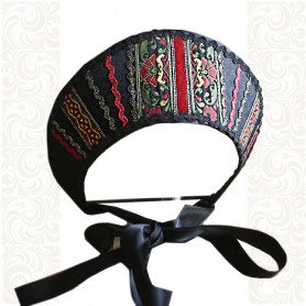Кокошник представлен в бордовом цвете.