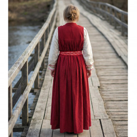 Выполненный в православном стиле сарафан с блузой «Костюм Воронежский» сшит из натурального хлопка в цветочек. Модель скромно декорирована однотонным воланом в цвет с основной тканью и тесьмой вьюнок. Можно носить под пояс и регулировать бретели по длине. Белая блузка из хлопка с длинным рукавом расшита натуральным нежным кружевом.
