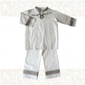 Косоворотка Оберег из белого льна (с красным) - один из лучших вариантов рубашки для мальчиков и мужчин для торжественного, праздничного случая. Косоворотку отличает традиционный крой, цветовое сочетание белого поля и славянского декора (жаккардовая тесьма яркого насыщенного цвета с символами жизни, силы, благополучия, удачи).