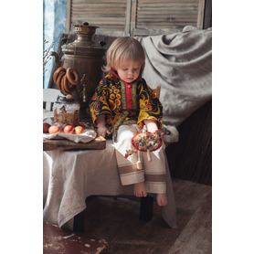 Косоворотка "Православная" выполнена из белого льна с соблюдением славянских традиций. Косоворотку украшает геометрический русский орнамент красно-белого цвета. Используется жаккардовая тесьма. Планка на груди, полики, пояс (кушак) выполнены в красном цвете. Косоворотка смотрится торжественно, из-за чего ее часто покупают для православных и праздничных мероприятий.
