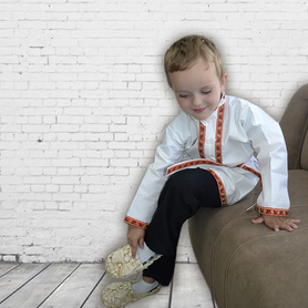 Ткань: хлопок или габардин ( полиэстер 100%, одежная ткань) на выбор покупателя  белого цвета. Цвет придает косоворотке торжественность. Ткань плотная, комфортная.