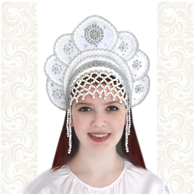 Для полноты образа на голову предлагаем подобрать соответствующий кокошник.