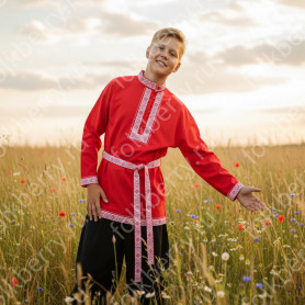 Платье «Дмитра» - современное прочтение славянских традиций. Платье четкого силуэта, чуть ниже колена, чистого яркого цвета. Платье отрезное по талии, длинный рукав-реглан, регулируемая горловина, юбка "почти солнце", с поясом. Для платья подобран эффектный декор - солярные славянские знаки. Платье сшито из габардина, ткани, которая не блестит и не мнется, всегда выглядит аккуратно, ярко, празднично, романтично.