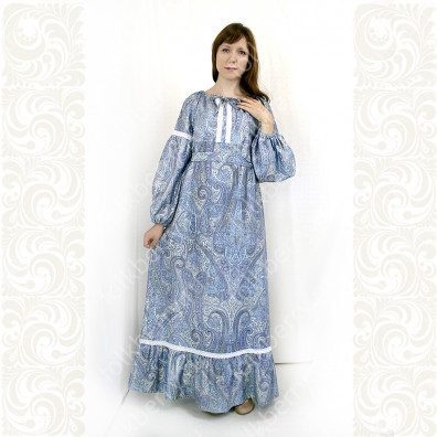 Цвет платья - нежно-пастельные оттенки синего цвета.