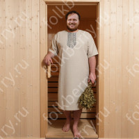 Платье смотрится очень гармонично: спокойный фон светло-серого цвета натурального льна, декор из кружева натурального цвета немного темнее или светлее цвета фона, создают удивительный ансамбль в фольклорном духе.