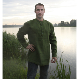 Данная модель привлекает внимание сочным бордовым цветом и благородным, тканным орнаментом на груди. Рубаха «Молодецкая» выполнена из натурального, плотного, умягченного льна. Хороший, оригинальный подарок важному для Вас человеку. В комплекте имеется пояс. По индивидуальному заказу можно подобрать порты.