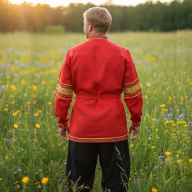 Рубаха Истоки, белый хлопок с красным