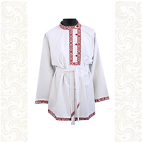 Натуральная ткань, свободный силуэт, отсутствие жесткого воротника, втачной рукав,  пояс в комплекте,  небольшие разрезы по боковым швам внизу делают рубаху комфортной и удобной.