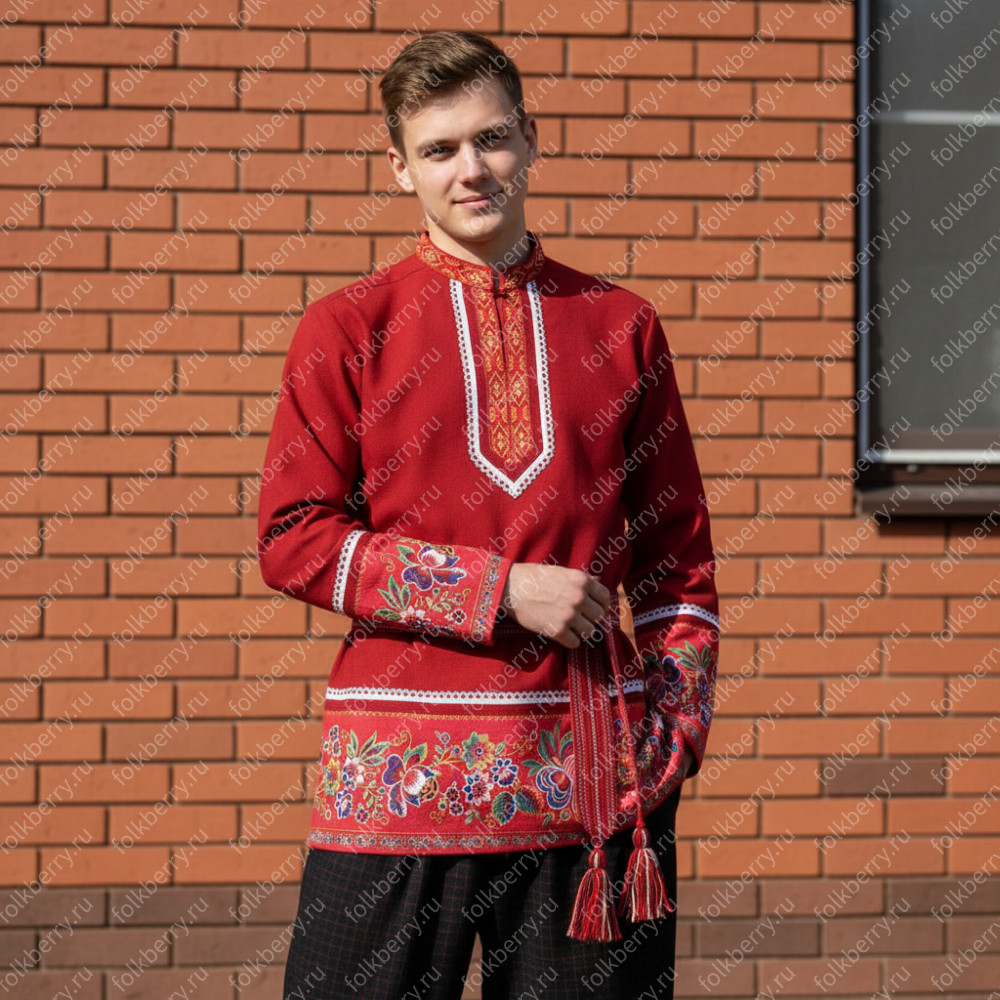 Данная модель привлекает внимание сочным бордовым цветом и благородным, тканным орнаментом на груди. Рубаха «Молодецкая» выполнена из натурального, плотного, умягченного льна. Хороший, оригинальный подарок важному для Вас человеку. В комплекте имеется пояс. По индивидуальному заказу можно подобрать порты.