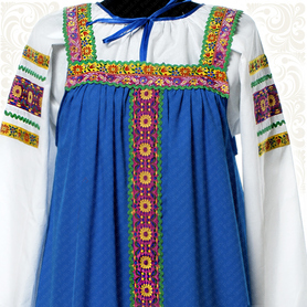 Сарафан с блузой «Снежана» будет хорош для тематических славянских мероприятий, национальных праздников, выступлений театральных и народных коллективов.